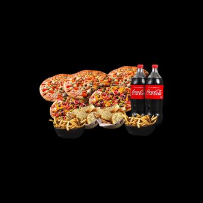 5 x Large Pizzas, Two garlic breads & Fries, 2 x 1.25l drinks