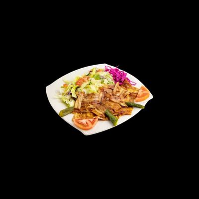 Slow Cooked meat off the Spit. Served with Lettuce, tomatoes, onions & Choice of Sauce.