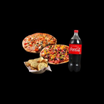 2 x Large Pizzas, Garlic Bread & 1.25L drink.